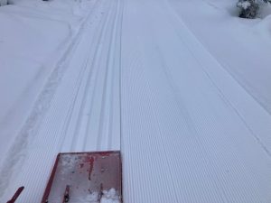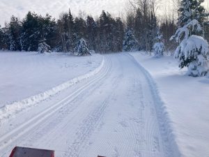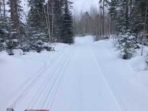 MECCA Trails received two inches of moisture starved snow early this morning adding to the light snowfall from yesterday. Ski trails are shaping up! With a solid base and new snow, groomers are working this morning setting track and renovating and combing skate lanes. With the new snow, the skate lanes and poles plant will be a bit soft for a day or two. Overall, trails are in good condition. Please be aware of yesterday’s post regarding the Homestead Trail wetland crossing, it’s still rough skiing over it.