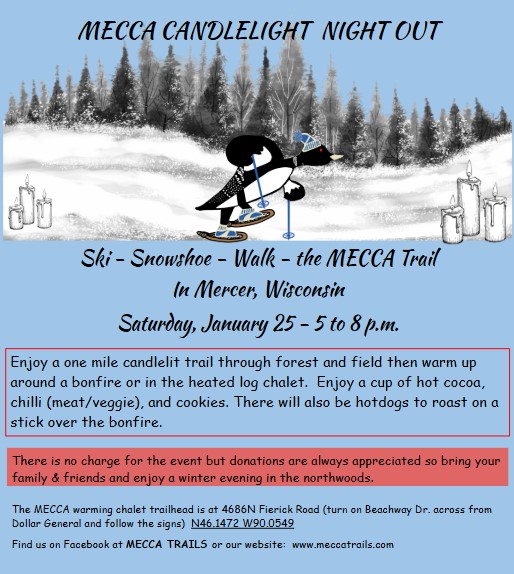 With the light snow that MECCA has received, conditions continue to improve. Tracks were set today on Wolf, Moose and Osprey and the rest of the trails will be set tomorrow, Sunday. The skate deck was also groomed and is good to very good with some easily avoidable thin spots. Most of which are on the trail that crosses the flowage. B skis still recommended. Enjoy some of the most beautiful trails in the Northwoods.
