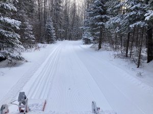 The Mercer area received about four to five inches of snow last night into the morning with a few flakes still coming down. Groomers are out leveling, packing, renovating and setting track. The trails have reverted back to early season conditions, low snow base and not completely level skiing platforms. Trails will be soft for the next couple of days, groomers will renovate and comb the skate lanes and if necessary reset tracks in the up coming days. Enjoy my friends!