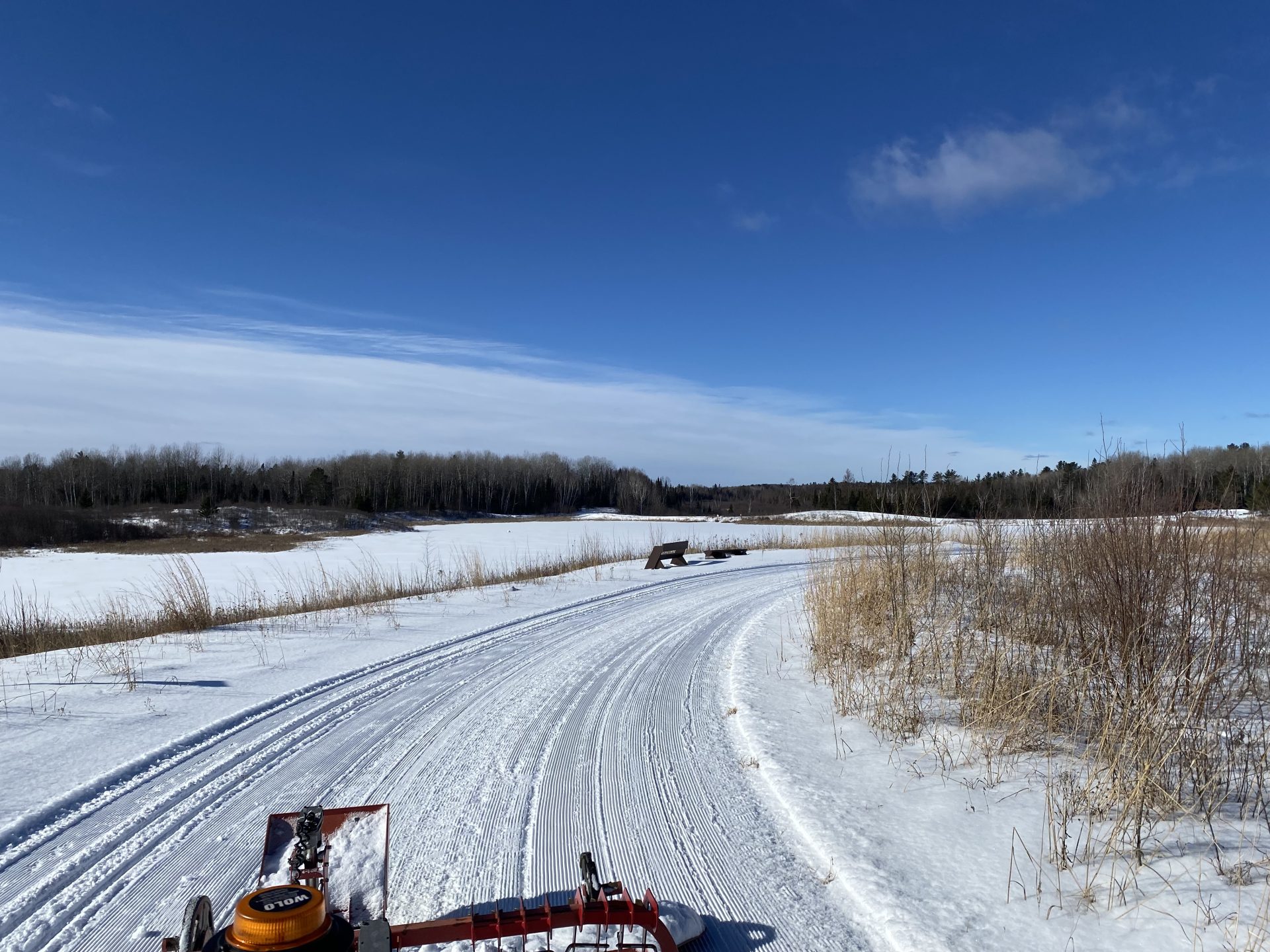 Groomers were out today, Monday. Skate deck is firm and fast and tracks are fair. Conditions have improved, even with the thin base. Brave the cold and enjoy the trails!