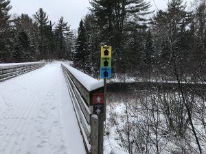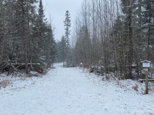 The Mercer area has been receiving lake effect snow on and off throughout the day. As you can see in the mid-day photo, the snow is about to cover the grass, it’s a positive start! Trails that cross wetlands have refroze again after the warm up over Christmas. MECCA’s Winterfest Event featuring MECCA 30 K, Flowage 15K and the Claire d’Loon 5 K races is 17 days away, we are hopeful for a combination of lake effect snow and a couple of winter storms will bring sufficient snow to have the event.